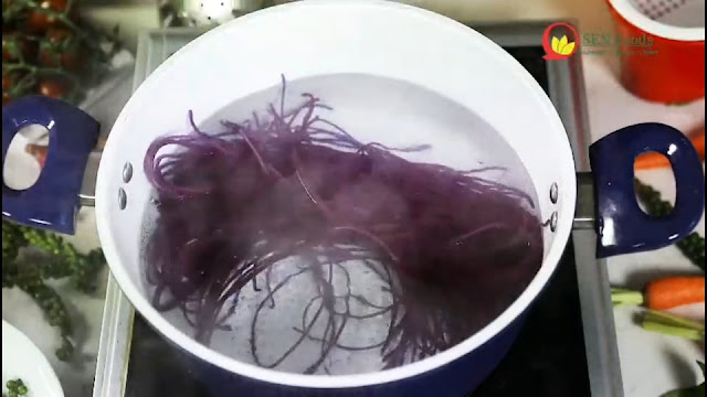 Gạo cầm tươi có giá trị dinh dưỡng cao, sợi bún được lựa chọn từ những hạt gạo ngon nhất. Sau những quá trình thủ công và qua máy sấy hiện đại thì cho ra sản phẩm là những sợi bún Cẩm tươi màu tím rất đẹp mắt. Bún cẩm tươi Sen Foods chế biến rất đơn giản. Chúng ta ngâm khoảng 10 phút, sau đó chờ nước sôi và cho bún vào luộc khoảng 5 phút và thử bún xem đã chín chưa.